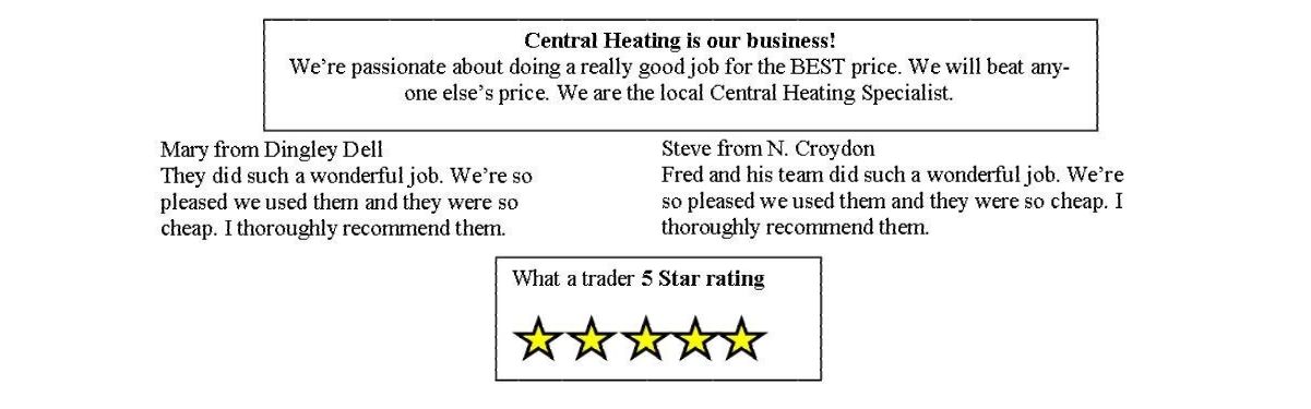 Never mind, a freebee newspaper came through the letterbox with a flyer. It was advertising a Central Heating business. Local and had 5 star rating with one of those firms who claim you can trust their members (You know the one).