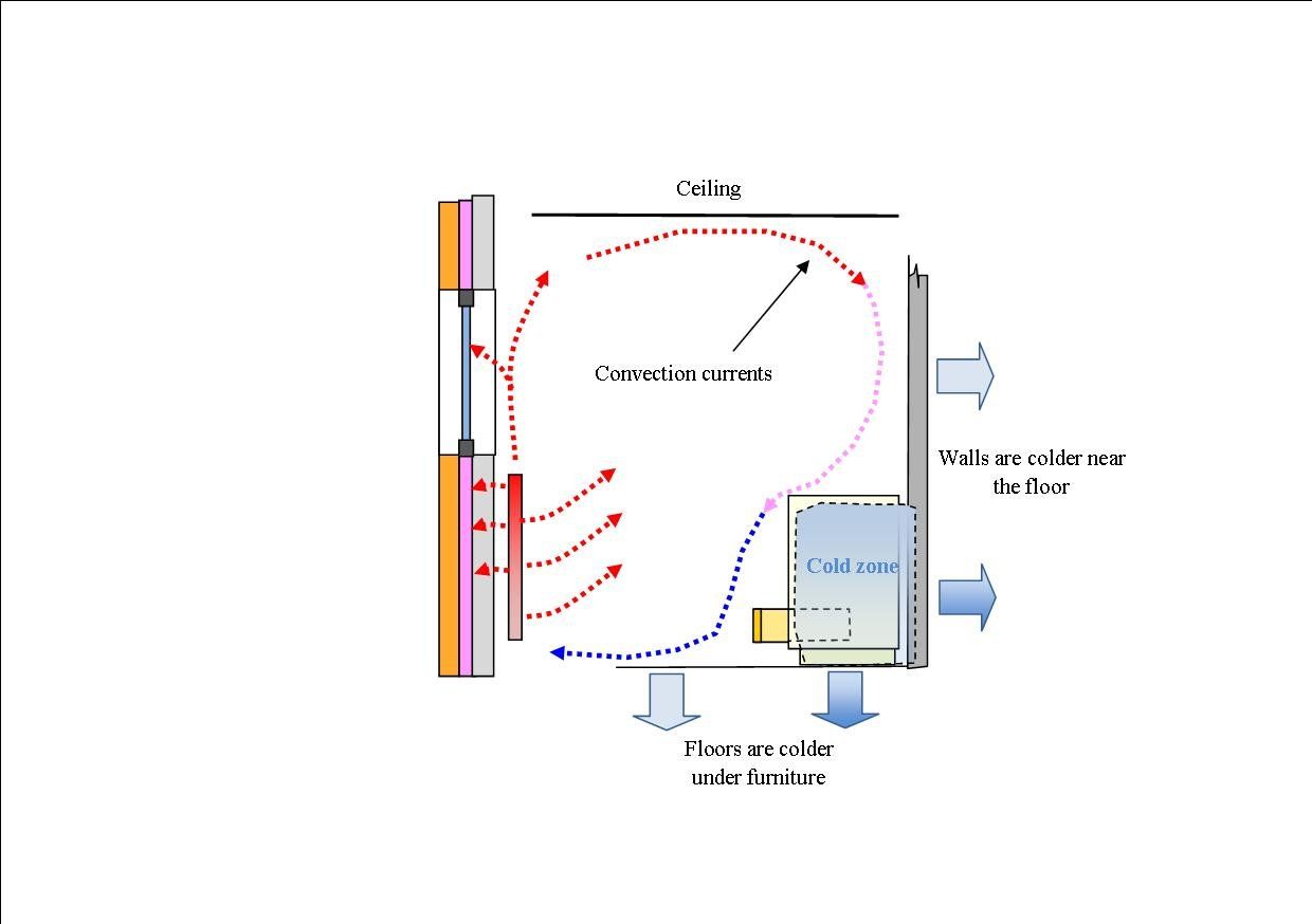 Now turn the heating up. The air temperature in the room increases. The air is in contact with everything in the room. Some surfaces will heat up to the same temperature as the air. Other surfaces will try to warm up but due to various reasons (All explained in ‘Construction Science Explained’ published next year) they act as heat sinks.