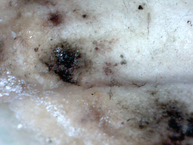 Will bleach dissolve calcite though? No is the easy answer. It will burn the cells of the mould and kill them on contact. It will take the colour out of the calcite if there is any (very light grey if it is thick enough) but there isn’t enough acid to dissolve the calcite.